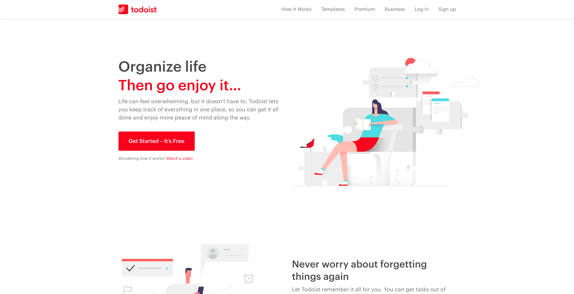 Todoist is yet another great to-do application being both cross-platform (web and mobile) and… freemium. This time in red rather than blue shades. In my eyes, this app is certainly more focused on project management 🙌, rather than everyday life (like Any.do is). This naturally comes with some additional features like templates, analytics, visualizations (of your time and tasks), backups, etc. There’s also a big note about integrations 🔌 with other apps and ecosystems like Google Calendar and Zapier for tasks automation. Of course, Any.do has some of these features as well, just they’re as popular / widely-used. The premium, subscription version brings i.e. custom templates and automatic notifications 💭.