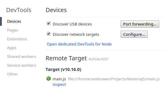 So, as you can clearly see, there’s a different type for our config equal to "node", and a new program property which points to our main.js file. From there, you can run the debugger and do all the sorts of stuff you could do in the previous example. Only this time there’s no external browser window opened and you have to deal with what the VS Code has to offer… unless you combine it with the --inspect technique.