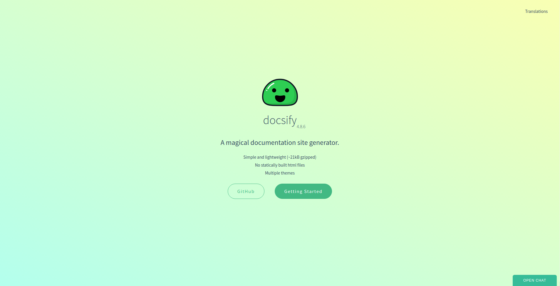 Docsify is being showcased as A magical documentation site generator. and well… it does its job quite nicely. What’s important is that it renders your documentation on the fly, which means that you don’t have to parse your MD to HTML - just put your files, where they should be and you’re good to go! Also, Docsify has a great number of plugins and some themes to choose from. It’s also well-documented (like a documentation generator should be). I might be a little biased as my own project’s documentation is using this tool. The only problems with it (at least for me) is that’s its compatibility with IE10+ (as written on its page) is not really good (but they’re working on it) and it lacks support for relative links.