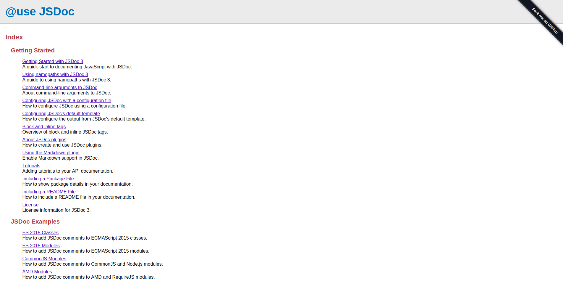 JSDoc is probably the most obvious and well-known docs generator for JS. It has support for many, many tags and is welcomed in almost all editors and IDEs with autocompletion support. Its output can be customized in many various ways using themes. Believe me, or not - there’s plethora of them. What’s even more interesting that with this and many other generators, you can output markdown for later use with any of documentation tools listed above.