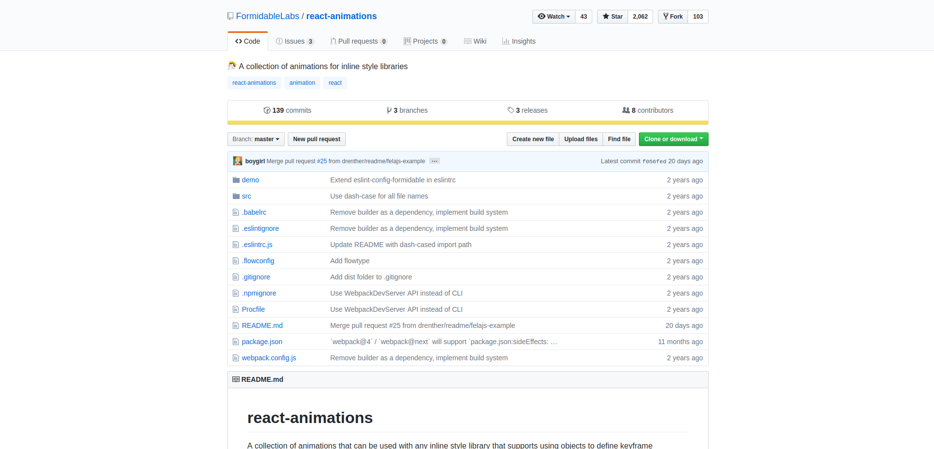 Let’s say that you don’t want to create any advanced animations for your websites, or even better… you don’t want to do this at all! 😉 Well… that’s where react-animations by Formidable Labs comes in! It’s a simple declarative React wrapper around animate.css - loved and respected collection of simple CSS animation effects. With react-animations, you can simply swap in your animation of choice, and use it however you want. And the whole process becomes even more enjoyable when you use other FL libraries like Radium or Aphrodite! If that’s all you want, then don’t hesitate and just use it freely!