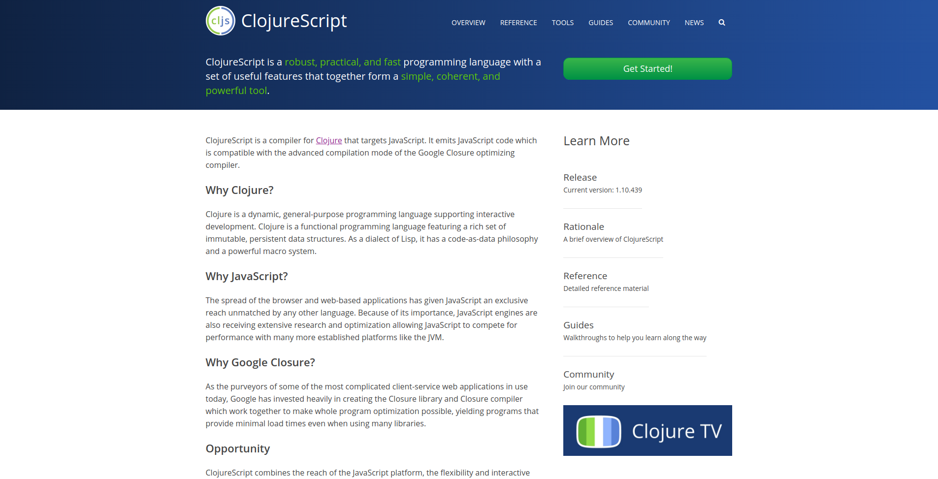ClojureScript is a Clojure to JavaScript compiler. ClojureScript fully embraces the idea of functional programming. As such it has a great collection of built-in immutable data structures. This provides a new way of thinking for object-oriented programmers. The syntax might seem a little awkward as almost everything is a function, but it can be got used to, given time. 🙃