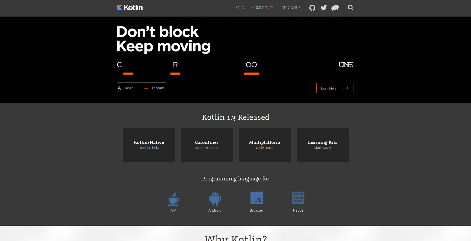 Kotlin is a JVM-based programming language with support for Android development, JS, native LLVM binaries and, naturally, JVM. It has an awesome type system, great interoperability and fantastic editor support (JetBrains’ project). The project has gained a lot of popularity these days. And it’s not without a reason. You know, cross-platform, nice syntax and a vast amount of features combined with good performance leads to great success.
